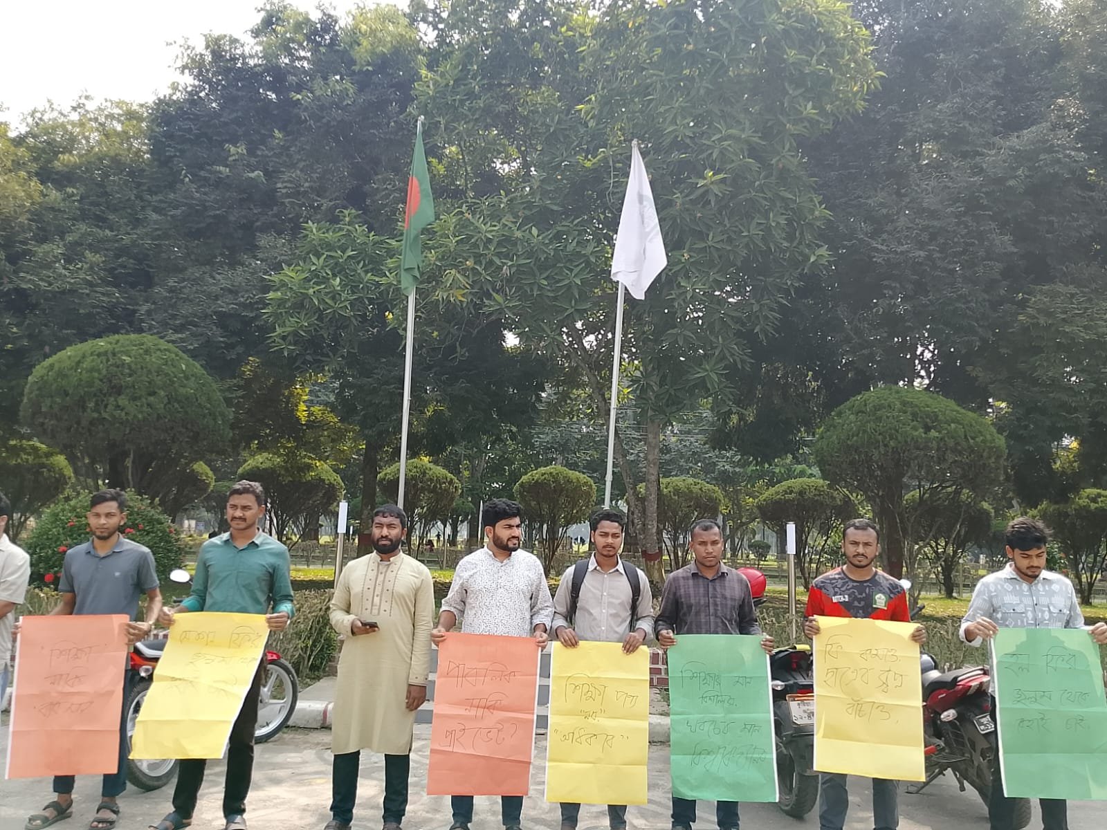 এসময় ‘ফি কমাও ছাত্রের স্বপ্ন বাঁচাও; শিক্ষা ‘পণ্য’ নয় ‘অধিকার’; পাবলিক না-কি প্রাইভেট? হল ফি’র জুলুম থেকে রেহাই চাই; সেশন ফি’র জুলুম থেকে রেহাই চাই সহ বিভিন্ন লেখা সংবলিত প্ল্যাকার্ড শিক্ষার্থীদের হাতে দেখা যায়।
