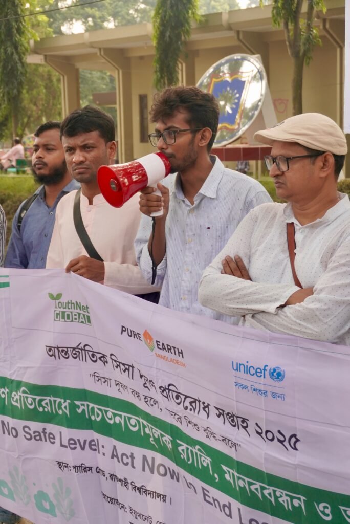 যুব সমাজকে সম্পৃক্ত করতে গুরুত্ব আরোপ করে ইয়ুথনেট গ্লোবালের নির্বাহী সমন্বয়ক সোহানুর রহমান বলেন, “সিসা দূষণ আমাদের শিশুদের জন্য খুবই ক্ষতিকর কিন্তু তা প্রতিরোধ করা সম্ভব। প্রতিটি শিশুরই আছে নিরাপদ, দূষণমুক্ত এবং সুস্থ পরিবেশে বেড়ে ওঠার অধিকার। যুব সমাজের মাধ্যমে সর্বস্তরে সচেতনতা বৃদ্ধি এবং দূষণ রোধে কার্যকরী পদক্ষেপ নেয়া সম্ভব যা আমাদের শিশুদের জন্য সুস্বাস্থ্য ও সিসামুক্ত নিরাপদ ভবিষ্যৎ নিশ্চিত