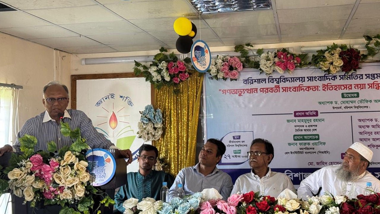 গত রবিবার (২৬ অক্টোবর) দুপুরে বরিশাল বিশ্ববিদ্যালয় সাংবাদিক সমিতির (ববিসাস) সপ্তম প্রতিষ্ঠাবার্ষিকী উপলক্ষে “গণঅভ্যুত্থান পরবর্তী সাংবাদিকতা ইতিহাসের নয়া সন্ধিক্ষণে বাংলাদেশ” শীর্ষক সেমিনারে প্রধান অতিথির বক্তৃতায় তিনি এসব কথা বলেন।