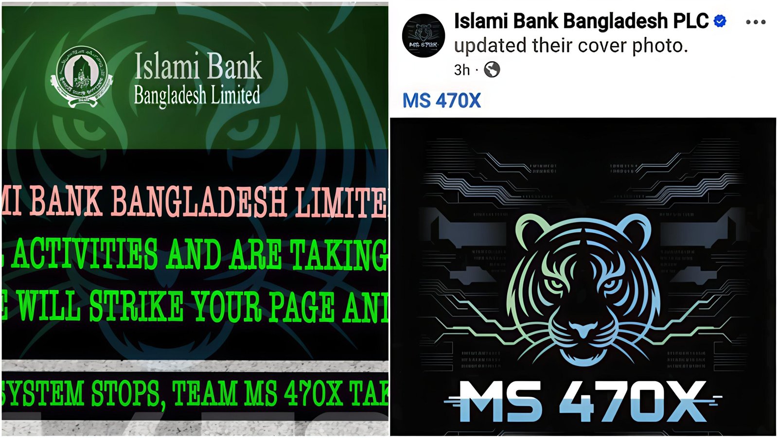ইসলামী ব্যাংক বাংলাদেশ লিমিটেডের অফিসিয়াল ফেসবুক পেজ হ্যাক হওয়ার ঘটনা ঘটেছে। পাশাপাশি পেজের প্রোফাইল ও কভার ছবি পরিবর্তন করে একটি হুমকিপূর্ণ বার্তাও পোস্ট করা হয়েছে।
