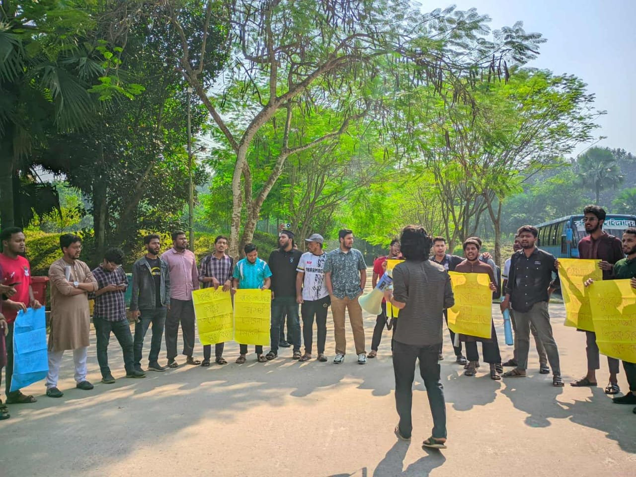 রবিবার (২৩ নভেম্বর) বিশ্ববিদ্যালয়ের গোল চত্বরে বেলা ১২টার দিকে এই মানববন্ধন করেন বিভিন্ন বিভাগের শিক্ষার্থীরা।