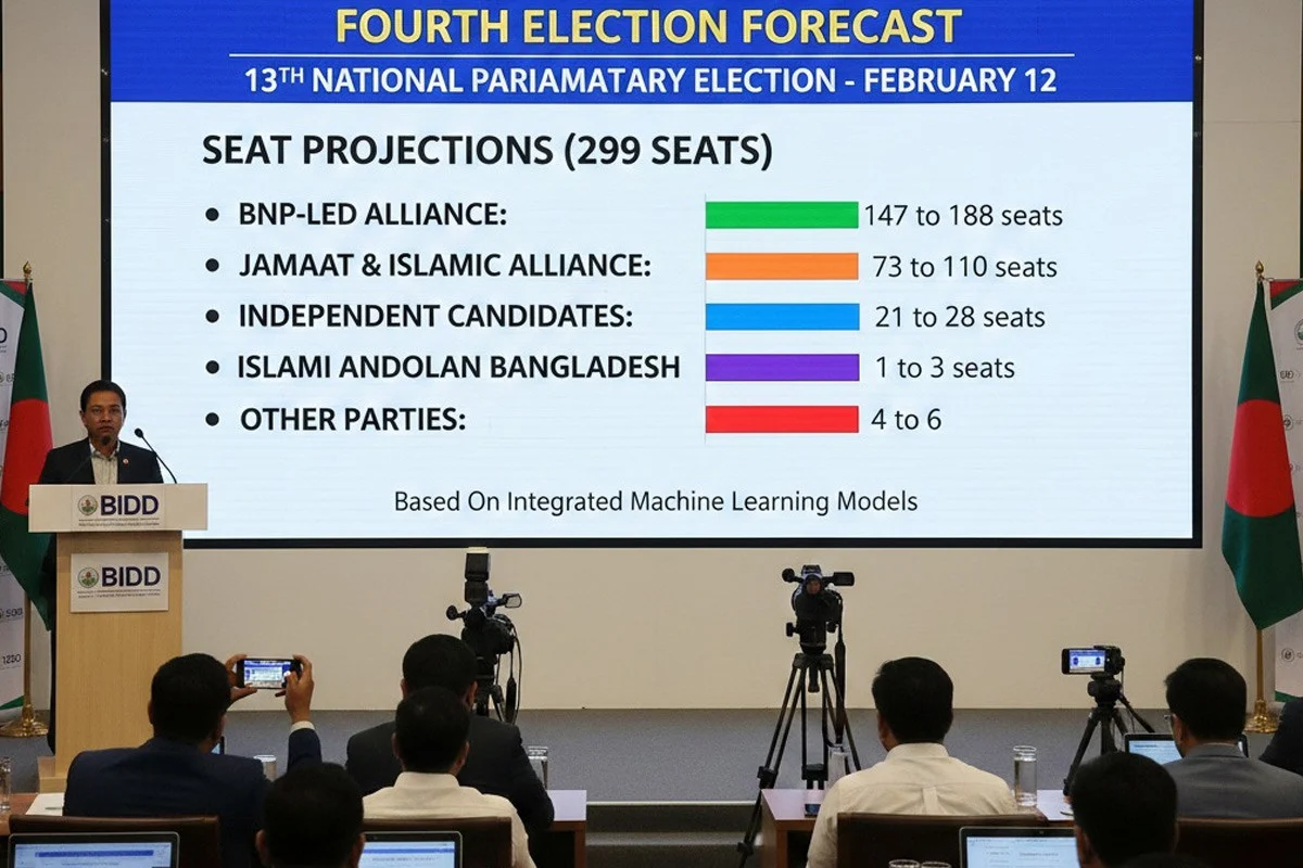 এর আগে, তিনটি পূর্বাভাস প্রকাশ করেছিল বিআইডিডি। সর্বশেষ প্রতিবেদনে সম্ভাব্য ভোটের হার, দলভিত্তিক আসন বণ্টন, ভোটের হারের তারতম্যে ফলাফলের পরিবর্তন এবং ভোটকেন্দ্রভিত্তিক ঝুঁকি বিশ্লেষণ করা হয়েছে।