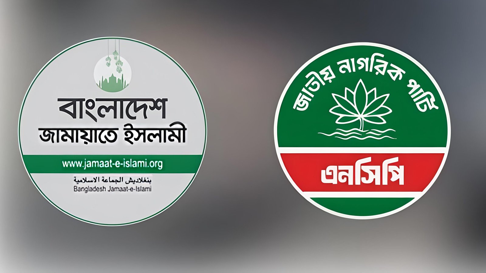 বাংলাদেশ জামায়াতে ইসলামী ও জাতীয় নাগরিক পার্টির (এনসিপি) লোগো (কোলাজ: বাংলা ট্রিবিউন)