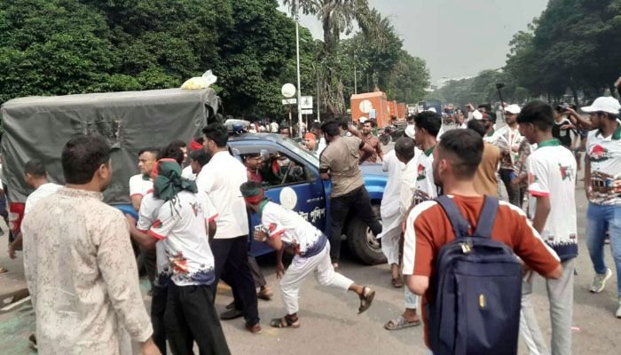 এতে ক্ষুদ্ধ জুলাই যোদ্ধারা সংসদ ভবন এলাকা থেকে বের হয়ে মানিক মিয়া অ্যাভিনিউয়ে দাঁড়িয়ে থাকা পুলিশের গাড়ি, বেশ কয়েকটি ট্রাক ও বাস ভাঙচুর করে। পরিস্থিতি নিয়ন্ত্রণে পুলিশ টিয়ারশেল নিক্ষেপ করে ও ধাওয়া দেয়।