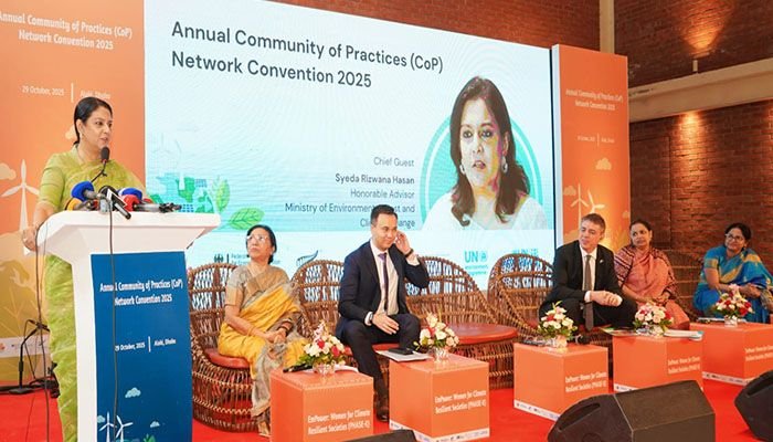 বুধবার (২৯ অক্টোবর) রাজধানীর আলোকিতে অনুষ্ঠিত ‘অ্যানুয়াল কমিউনিটি অব প্রেক্টিস (কপ) নেটওয়ার্ক কনভেনশন-২০২৫ ইমপাওয়ার: ওম্যান ফর ক্লামেট রেজিলেন্ট সোসাইটিস’ শীর্ষক অনুষ্ঠানে প্রধান অতিথির বক্তব্যে এসব কথা বলেন তিনি।
