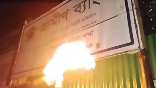 পাবনায় গ্রামীণ ব্যাংকের সাইনবোর্ডে আগুন