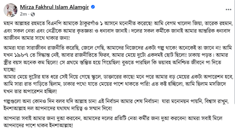রাজনীতিতে নিজের দীর্ঘ পথচলার স্মৃতিচারণ করে ফখরুল লেখেন,