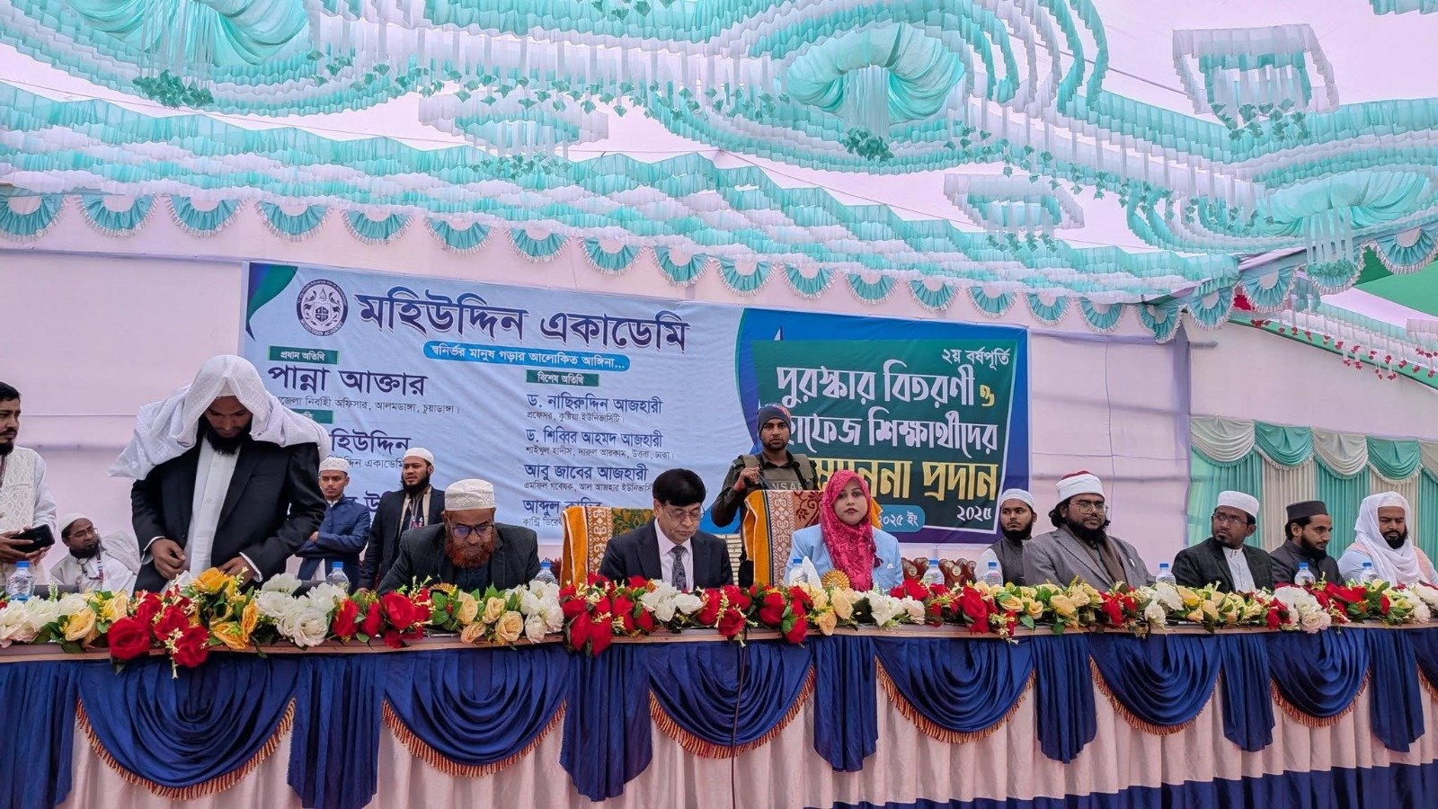 মহিউদ্দিন একাডেমি আলমডাঙ্গা আয়োজিত ২য় বর্ষপূর্তি উপলক্ষে পুরস্কার বিতরণ, আলোচনা সভা অনুষ্ঠান ও হাফেজ শিক্ষার্থীদের সম্মাননা প্রদান করা হয়েছে। চুয়াডাঙ্গা জেলার আলমডাঙ্গা থানার কামালপুর মহিউদ্দিন একাডেমি চত্বরে সকাল ১০ টার সময় প্রধান অতিথি হিসেবে উপজেলা নির্বাহী অফিসার পান্না আক্তার অনুষ্ঠানের শুভ উদ্বোধন করেন।