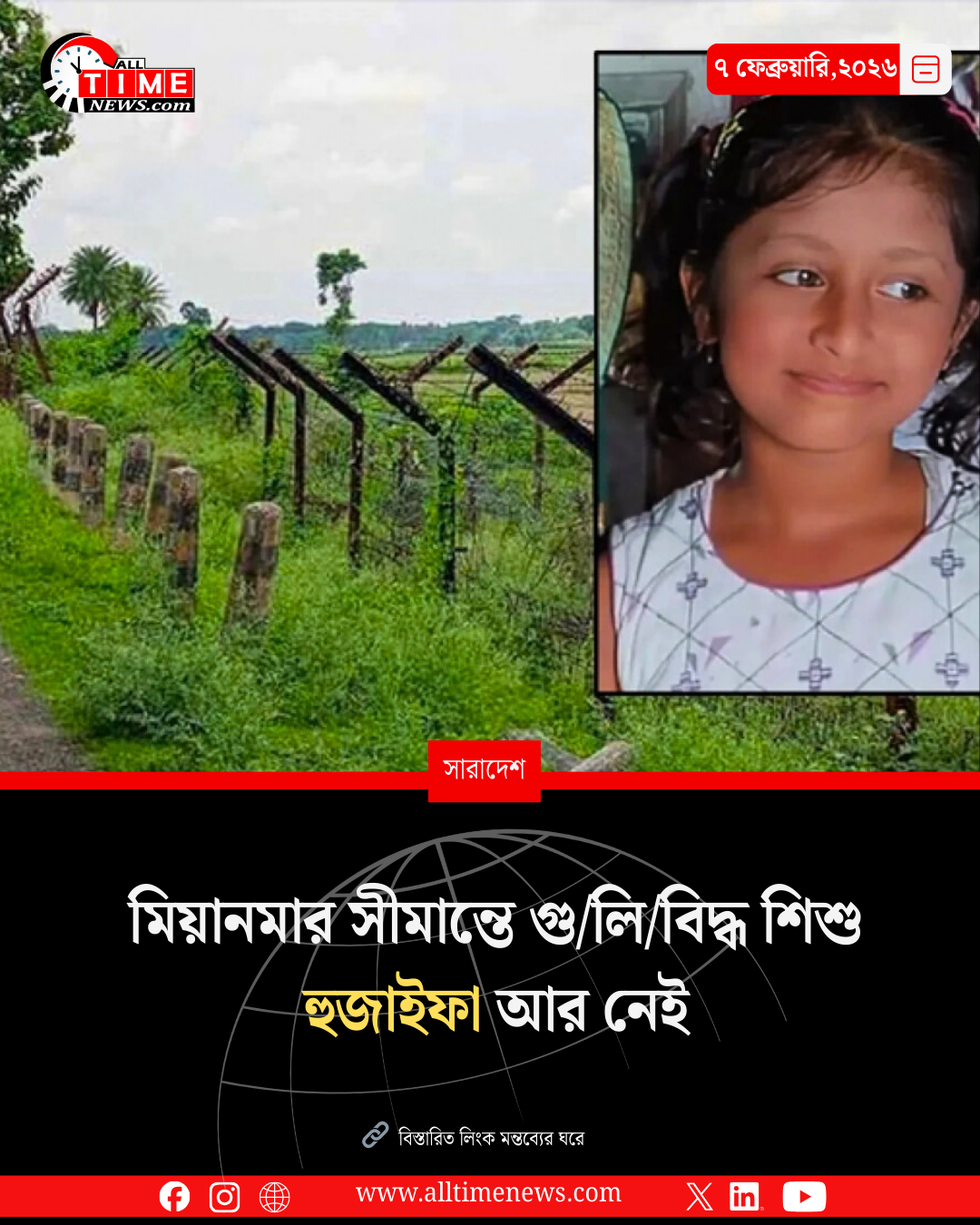 এর আগে গত ১১ জানুয়ারি সকালে কক্সবাজারের টেকনাফ উপজেলার হোয়াইক্যং ইউনিয়নের তেচ্ছিব্রিজ এলাকায় মিয়ানমার সীমান্তের ওপার থেকে আসা গুলিতে গুরুতর আহত হয় হুজাইফা আফনান। সে স্থানীয় জসিম উদ্দিনের কন্যা।