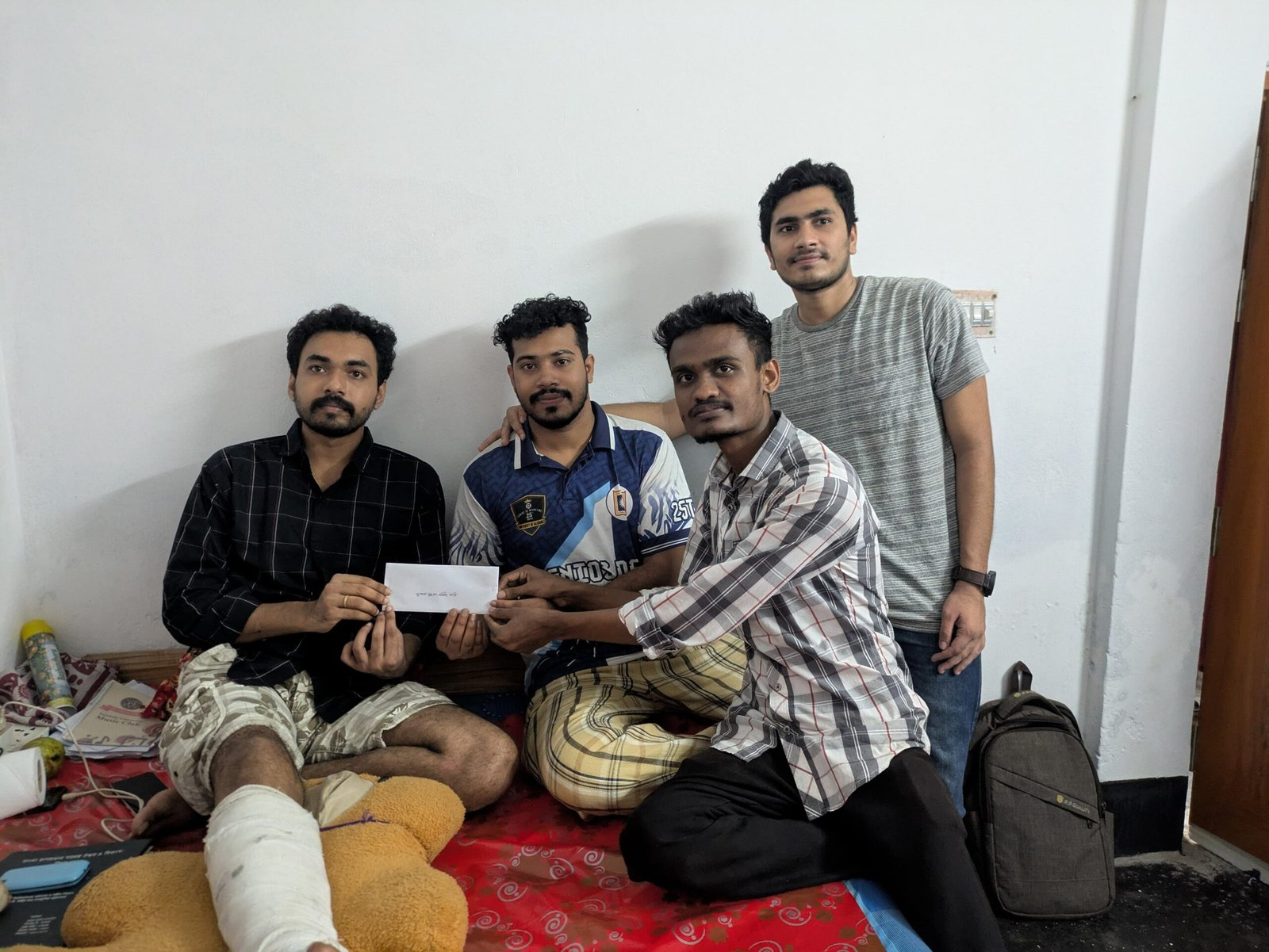 সহপাঠীর এই দুঃসময়ে তাঁর পাশে দাঁড়াতে এগিয়ে আসে খুলনা জেলা সমিতি। সমিতির পক্ষ থেকে আর্থিক অনুদান হস্তান্তরের সময় উপস্থিত ছিলেন সংগঠনের সভাপতি মোঃ নাঈমুল হাসান খান, যুগ্ম সাধারণ সম্পাদক তৈবুর শেখ এবং সাংগঠনিক সম্পাদক রাফায়েল আলম তমো।