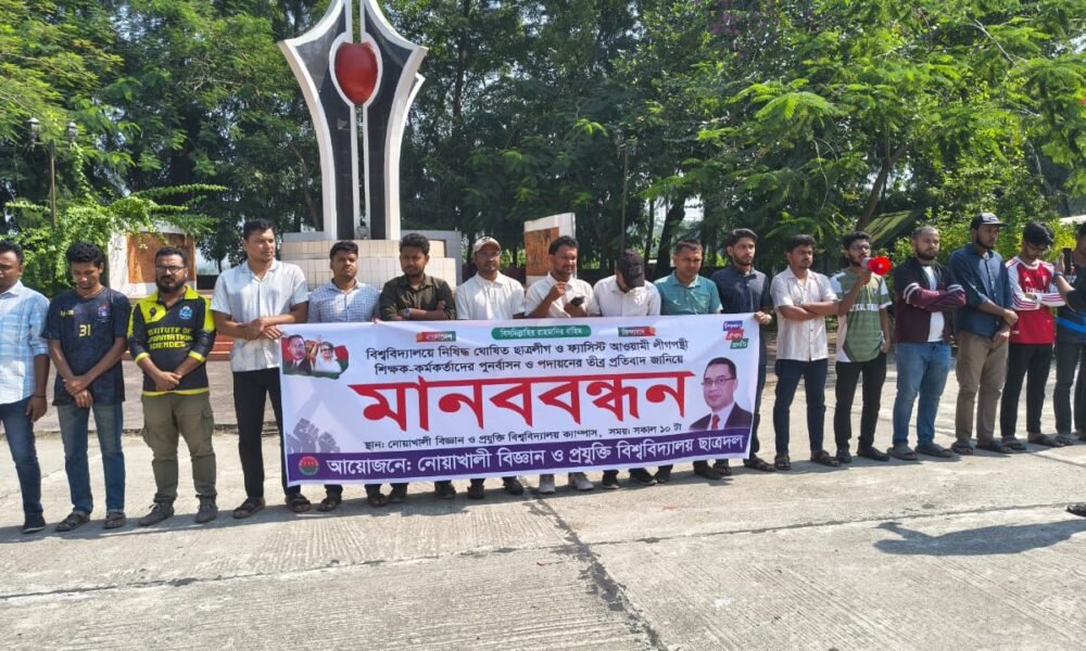 ডেস্ক নিউজ নোয়াখালী বিজ্ঞান ও প্রযুক্তি বিশ্ববিদ্যালয়ে (নোবিপ্রবি) নিষিদ্ধ ঘোষিত ছাত্রলীগ ও আওয়ামীপন্থী শিক্ষক-কর্মকর্তাদের পুনর্বাসন ও পদায়নের প্রতিবাদে মানববন্ধন করেছে বিশ্ববিদ্যালয় শাখা ছাত্রদল। বুধবার (১২ নভেম্বর)...