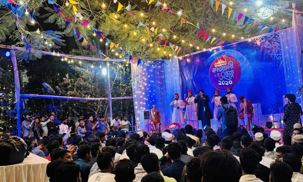 ডেস্ক নিউজ জগন্নাথ বিশ্ববিদ্যালয়ে (জবি) কাওয়ালি সন্ধ্যার আয়োজন করেছে বাংলাদেশ ইসলামী ছাত্রশিবিরের অঙ্গ সংগঠন ‘নিমন্ত্রণ সাংস্কৃতিক সংসদ’। শুক্রবার (৭ নভেম্বর) সন্ধ্যায় বিশ্ববিদ্যালয়ের শহীদ মিনার প্রাঙ্গণে এ...